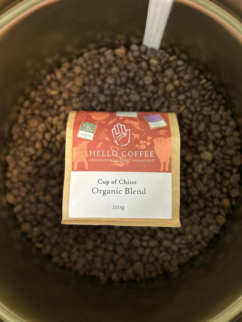 We've teamed up with the crew at Hello Coffee to create an exclusive organic Cup Of Chino blend. This brew is smooth, full of chocolate & cherry notes, and delicious served black or on milk.